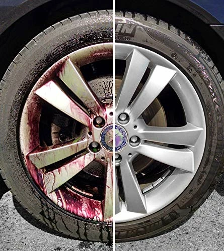 Works amazing on my Range Rover wheels which has absolute horrific break dust. See before and after pics with no wiping or agitating. Just spray on, sit, and pressure wash off. Price is a tad high and definitely wish the bottles were larger or the price was lower.