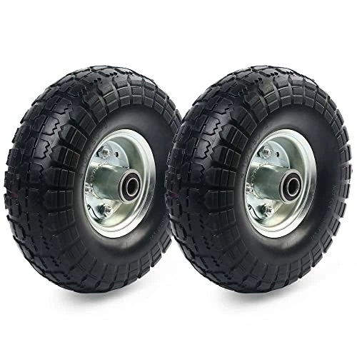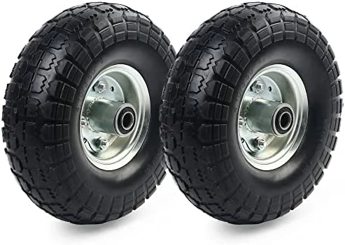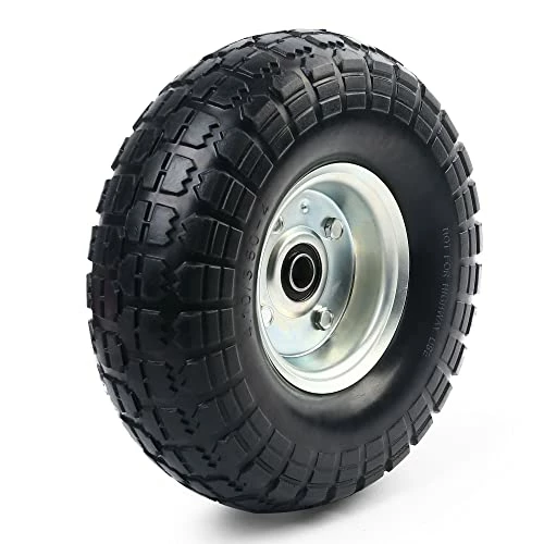 - 10” flat free tubeless tires for utility equipment. This tire is highly compatible with yard tractors, wagons, garden carts, hand trucks, portable generators, dollies, trolleys, pressure washers, gorilla cart, and more