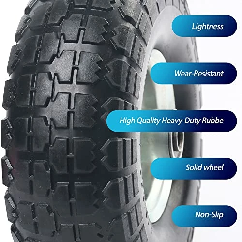 - DIMENSION: 2 Pack 4.10/3.50-4″ Solid Tire, 10” tire diameter, 3.1” tire width. Max Load: 300lbs. Not for highway use