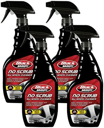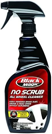 Black Magic No Scrub All Wheel Cleaner dissolves brake dust, dirt, and road grime quickly and easily. Its powerful formula improves the appearance of all types of wheels without hazing or discoloration. Specially formulated to safely clean all wheel types, with a gentle chemistry that is safe for use on ABS plastic, chrome, aluminum, wire, and mag wheels with clear coat, polished, painted or anodized finish.
