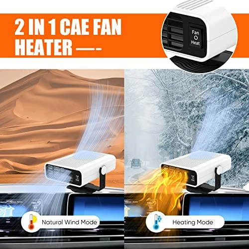 - 2 In 1 Modes-This car heater have two setting modes: heating and cooling.You can switch at will, use our heater to eliminate fog and frost on the glass in winter, and provide you with a cool breeze in summer.