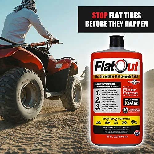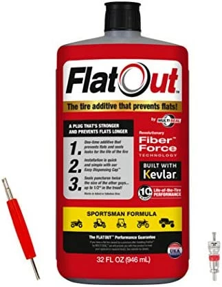 - PERFECT FOR VEHICLES: FlatOut tire sealant is perfect for ATV’s, UTV’s, Golf Carts, Dirt Bikes, and Side by sides