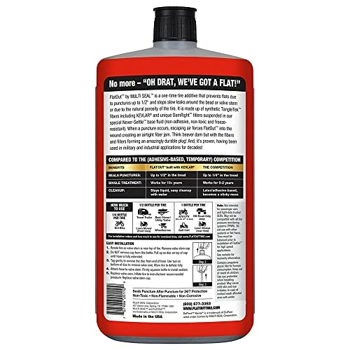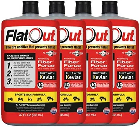 - CONTAINS SUPER-STRONG KEVLAR: Containing super-strong Kevlar fibers FlatOut Tire Sealant Sportsman Formula is water-washable, non-toxic and latex/adhesive-free so there is never a sticky mess to clean up
