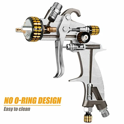 - No O-ring design, easy to clean with chemical agents and thinners. Super-precision external mix cap with filter for perfect pattern. Non-drip cup protects against paint wasting and ensures less mess, saving your time and money