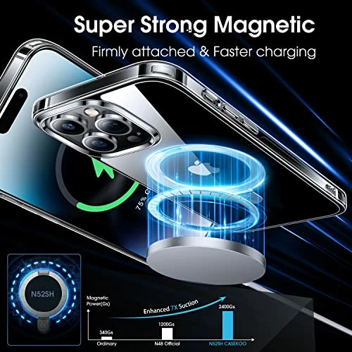 - 【Magic Permanent Magnetic】 Level up your MagSafe with a stronger permanent magnet. The powerful magnets of this case for iPhone 14 Pro Max have a holding force of 2400g, offering a 200% stronger adsorption than your bare phone or official MagSafe cases to ensure secure attachment with all MagSafe-style accessories and true power in a snap. Precisely aligned design realizes the 1:1 maximum output for fast yet safer charging.
