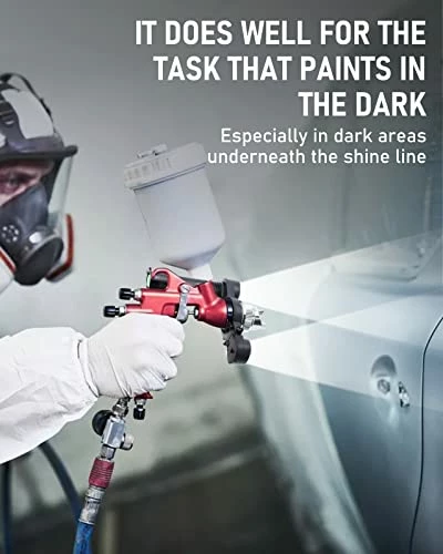 - Eliminate Nasty Paint Runs : Most paint runs are caused by bad lighting surroundings,professional automotive spray paint gun Lighting system with 100% brilliant light makes your painting evenly and easily,no more minor imperfections and streaking from missed overlaps