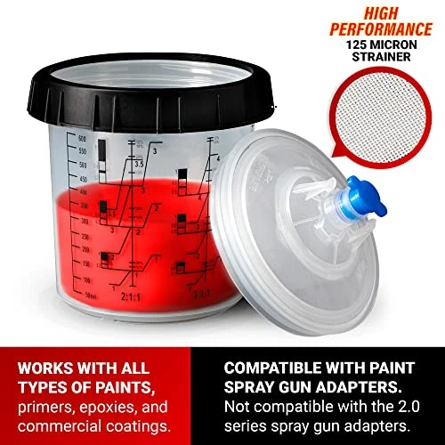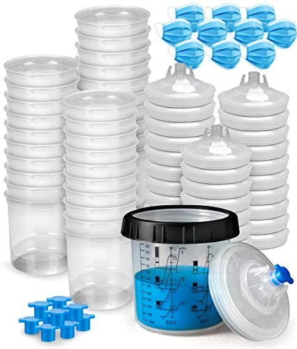 Discount ⌛ Savito – Paint Cups Spray Paint Mixing Cup Paint Spray Gun Cup Liners And Lid System 40 Cups Pack 20 Ounces Each Includes 40 Lids With Strainer, 1 Hard Cup With Retainer Ring 10 Sealing Plugs ????